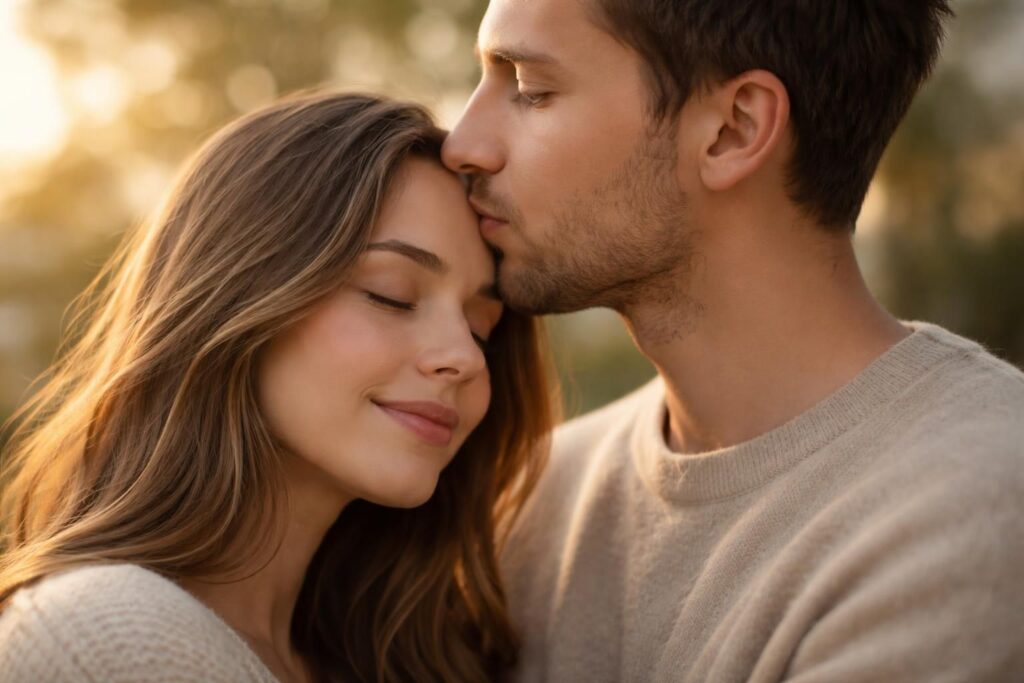 Les émotions véhiculées par un bisou sur le front dans une relation amoureuse